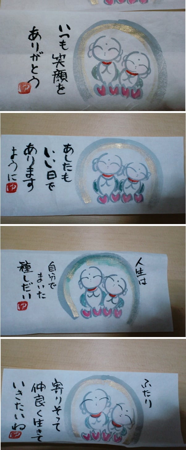 We are also working on bringing back some of our past designs, such as "Fireworks," "Goldfish," "Jizo," and "Fireflies," so please look forward to those updates. For the "Jizo" design, we can add a custom message of up to 30 characters for an additional ¥100.
